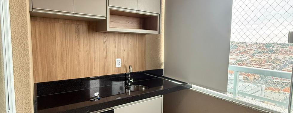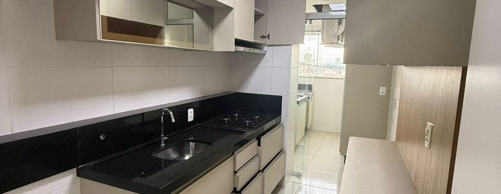2 suítes, sala, cozinha, varanda, 1 vaga de garagem. Armários embutidos na coz